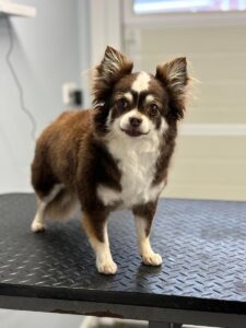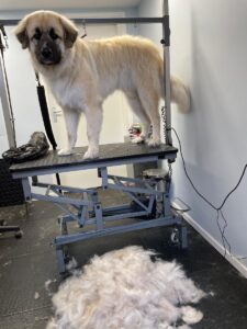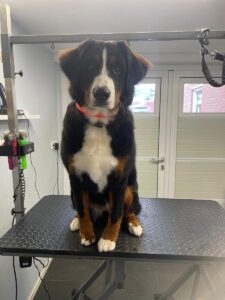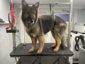 Daarna wordt uw hond droog geblazen met een krachtige waterblazer. De luchtstroom verwijdert alle losse, zware haren uit de vacht. Vervolgens wordt uw hond volledig uitgekamd. Als laatste wordt uw hond naar wens geknipt.